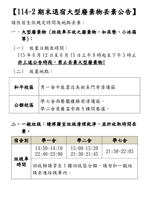 | 114-2期末退宿大廢公告 | 112.48 KB | 0 | 2026-04-14 | DownloadPreview | |