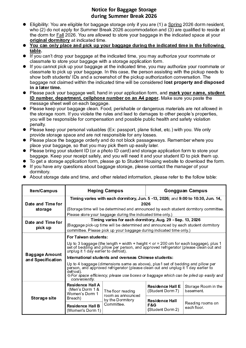 | Notice for Baggage Storage during Summer Break 2026 | 331.21 KB | 0 | 2026-04-14 | DownloadPreview |