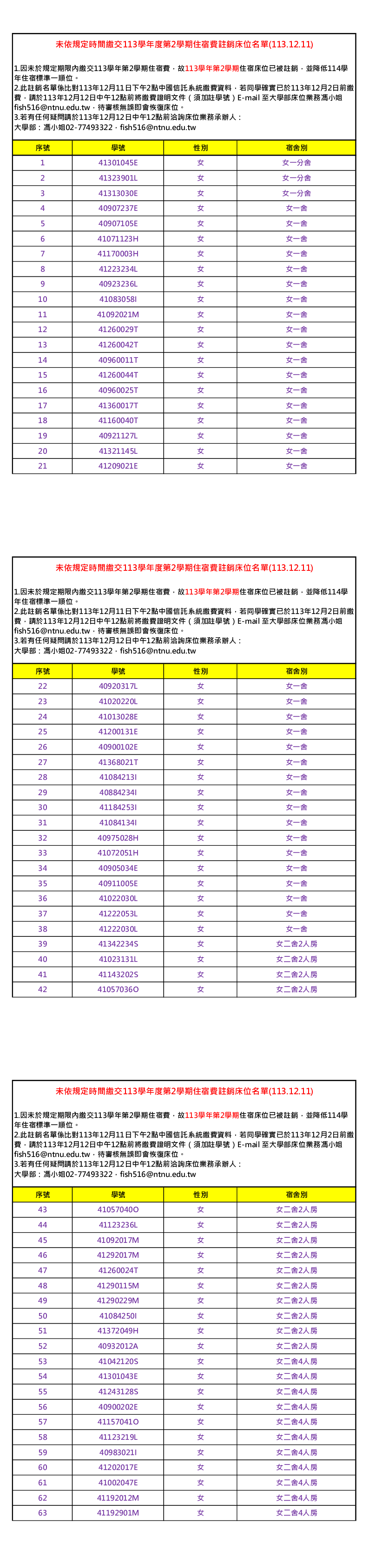 2024-12-11大學部-113-2未繳費註銷床位公告名單113.12.11